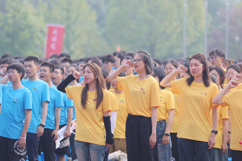 全體新生進(jìn)行了莊嚴(yán)的新生入學(xué)宣誓。