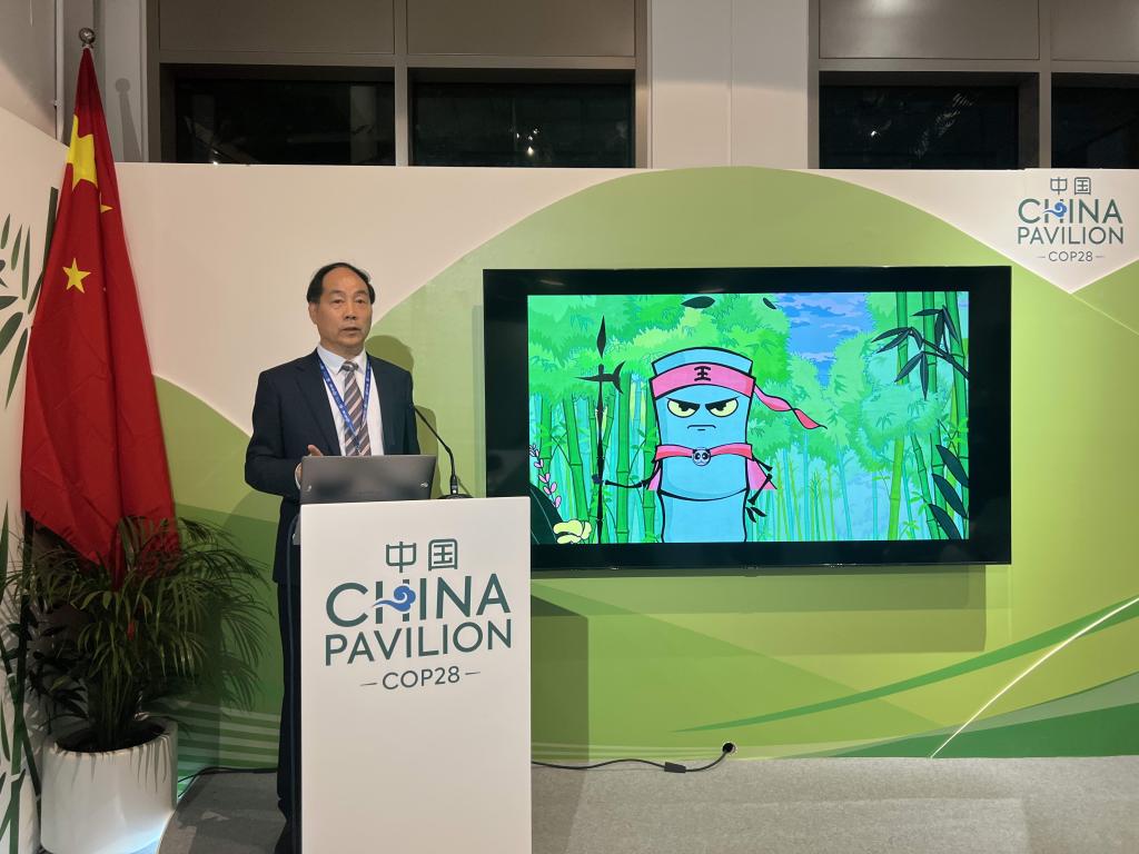 在聯合國氣候變化迪拜大會上,我校還和中國綠色碳匯基金會、加拿大UBC還聯合組織了“林業基于自然的氣候變化解決方案:知識與技能的全球對話”邊會,來自國內外的林業專家、企業家、政府官員等共同探討了林業緩解氣候變化的現狀和趨勢。周國模教授在會上進行了綠色創新案例分享,介紹了團隊在“以竹代塑”方面的研究成果和推廣成效。