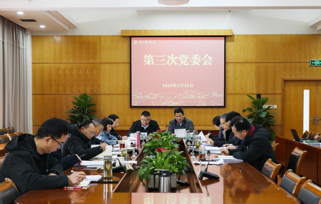 會議傳達學習了農(nóng)歷新年上班第一天省委召開的全省持續(xù)推動“八八戰(zhàn)略”走深走實,全力打造高素質干部隊伍、高水平創(chuàng)新型人才和企業(yè)家隊伍、高素養(yǎng)勞動者隊伍大會精神。會議要求,要深刻領悟“新春第一會”的重要意義,深刻認識高質量推進工作關鍵在人、關鍵在隊伍的重要性,并將會議精神轉化為具體行動。要從現(xiàn)代化先行的核心支撐、基本路徑、根本目的和深層力量上認識到,全面加強“三支隊伍”建設是固本之舉、關鍵之招、長遠之策、根本之舉。要引導廣大教師把智慧和力量凝聚到實現(xiàn)省委省政府的工作部署上來,為實現(xiàn)浙江省高等教育強省戰(zhàn)略,高水平推進省域現(xiàn)代化貢獻浙農(nóng)林大的智慧和力量。