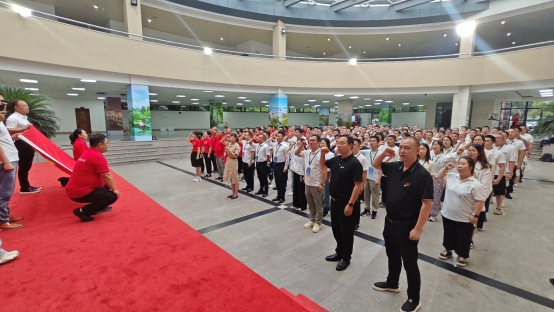 校黨委在活動中心舉行“七一”入黨宣誓儀式。全體師生黨員莊嚴(yán)宣誓,銘記入黨初心,強(qiáng)化黨員意識。與會領(lǐng)導(dǎo)為新發(fā)展黨員代表佩戴黨員徽章。學(xué)校相關(guān)職能部門負(fù)責(zé)人、各二級黨組織負(fù)責(zé)人、2024年新發(fā)展師生黨員代表參加入黨宣誓儀式。