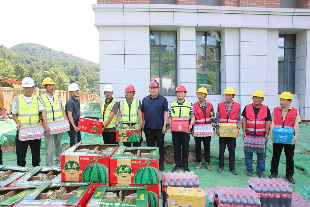 朱斌先后走訪慰問了校園保衛人員、科研工作人員、工程施工人員、后勤保障人員以及招生工作人員。每到一處,朱斌都與大家親切交談,向不畏辛勞堅守崗位的教職工表示感謝,并叮囑大家要注意防暑降溫,合理安排工作與休息,保持高效的工作狀態。