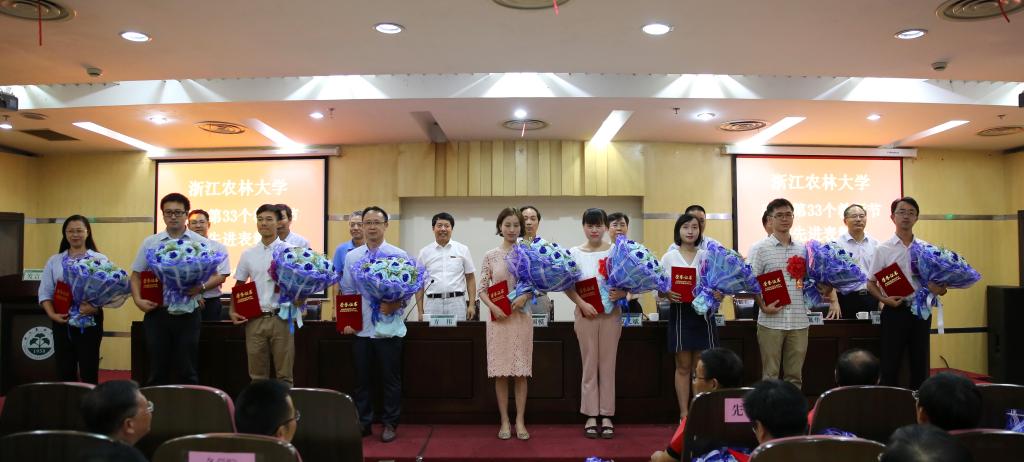 9月8日下午,學校慶祝第33個教師節暨先進表彰會在東湖校區圖書館第二報告廳舉行。校黨政領導班子成員周國模、應義斌、史永安、王自勇、鐘平、金佩華、胡祖吉、童曉暉出席表彰大會,并為受表彰的集體和個人頒獎。會議由校黨委副書記方偉主持。