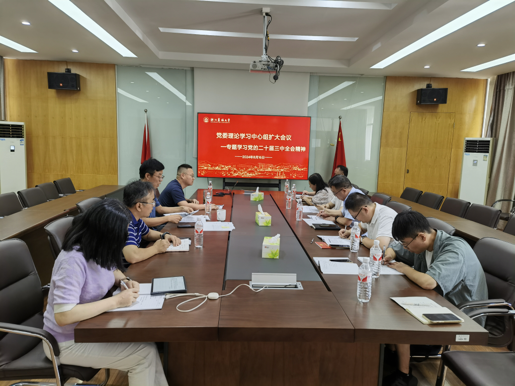 8月16日,林生院黨委召開(kāi)理論學(xué)習(xí)中心組擴(kuò)大會(huì)議,專(zhuān)題學(xué)習(xí)貫徹黨的二十屆三中全會(huì)精神。會(huì)議由學(xué)院黨委書(shū)記鄭炳松主持,理論學(xué)習(xí)中心組成員及教工黨支部書(shū)記參加會(huì)議。
