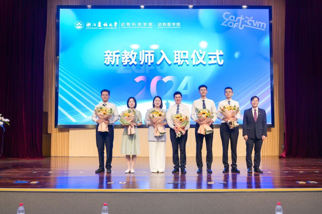 9月8日,在動科動醫學院新教師入職儀式上,校黨委委員、學院院長宋厚輝,學院黨委書記魏玲玲為14位新進教師佩戴院徽、贈送鮮花。學院黨政班子成員、高層次人才、學科專業負責人、新生班主任、新進教師、2024級全體新生參加。