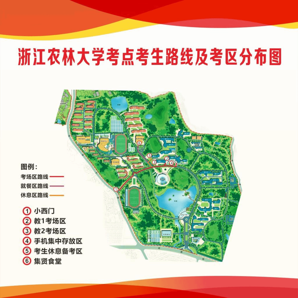 2.考試期間,東湖校區(qū)小西門(杭州市臨安區(qū)農(nóng)林大路1178號(hào))作為考生進(jìn)校入口,請(qǐng)考生按照指定路線進(jìn)入考區(qū),詳見(jiàn)“考生路線及考區(qū)分布圖”。