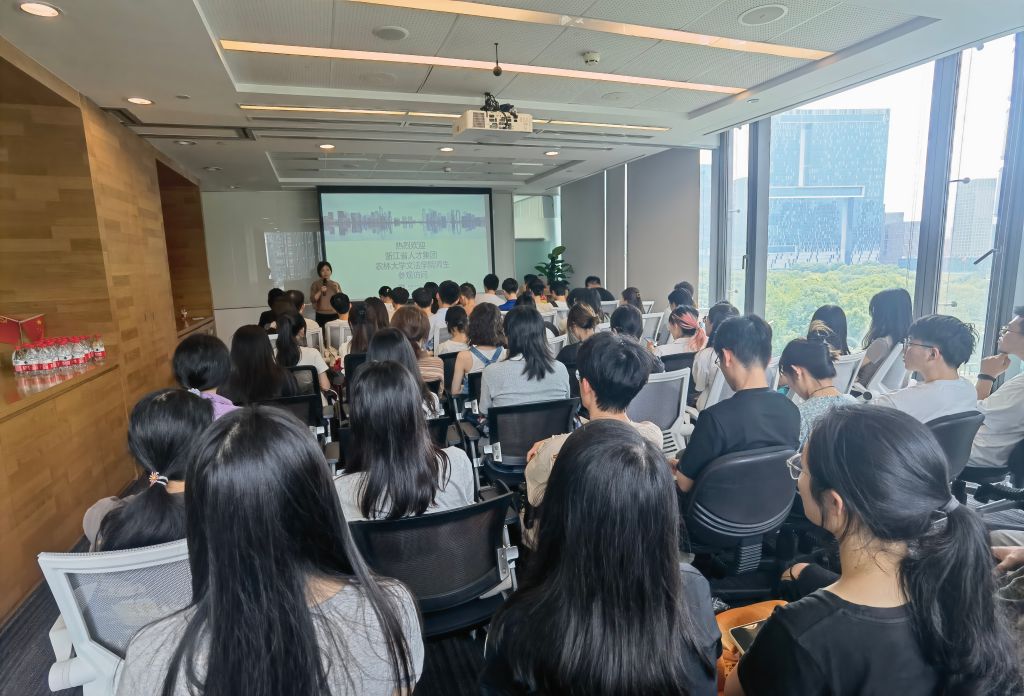 在浙江外事旅游股份有限公司,總經理錢琳向大家介紹了公司的發展歷史、企業現狀、主營業務和人才需求等情況。同學們也提出了自己關于就業方面的疑問,對方都進行了耐心解答,并且發布了5家分公司的暑期實習崗招聘信息,為有實習意向的同學提供就業機會并進行面試選拔。學院與該公司還進行了人才培養、職業規劃、實習實踐等方面的交流,雙方都留下了較好印象,將在下半年繼續來校開展人才招聘。