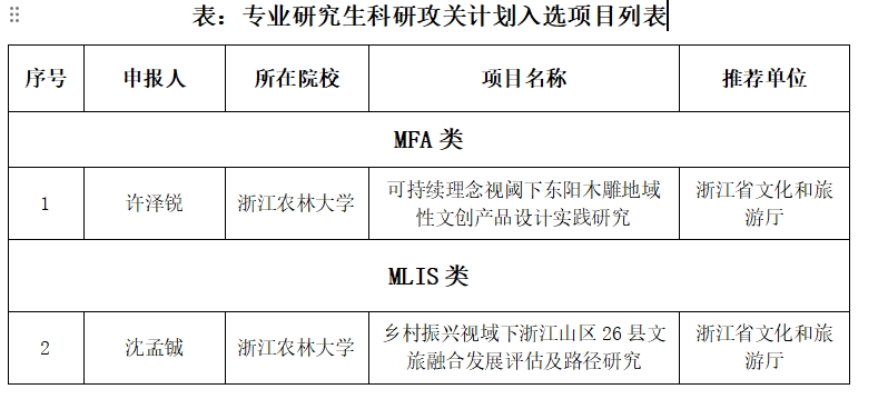 近日,文化和旅游部辦公廳發布《關于公布2024年全國文化藝術職業教育和旅游職業教育提質培優行動計劃支持名單的通知》通知,經個人申報、浙江省文化和旅游廳推薦、文化和旅游部科技教育司組織評審,我校2項專業研究生科研攻關計劃入選全國文化藝術職業教育和旅游職業教育提質培優行動計劃,這是我校首次入選該計劃,入選數量位居全國第二。