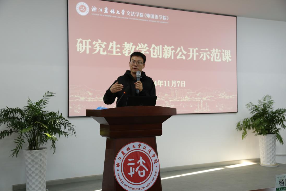 11月7日,文法學(xué)院組織開展了研究生教學(xué)創(chuàng)新公開示范課活動(dòng)。本次活動(dòng)特別邀請(qǐng)了研究生院相關(guān)負(fù)責(zé)人和研究生教學(xué)督導(dǎo)組組長作為本次示范課專家進(jìn)行指導(dǎo)點(diǎn)評(píng)。
