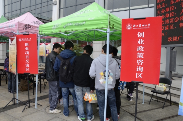 浙農林大新聞網訊  4月21日,由學生處就業指導服務中心主辦,大學生創業社承辦的第七屆大學生校園創業實踐博覽會在東湖校區活動中心廣場順利舉行。