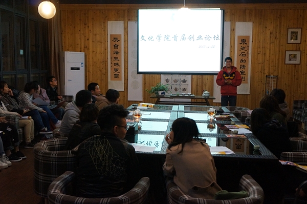 浙農林大新聞網訊  為展示學院學生創業成果,分享交流大學生創業經驗,文化學院于4月22日晚在中國茶謠館二樓舉辦首屆大學生創業項目論壇暨創業項目展示會。