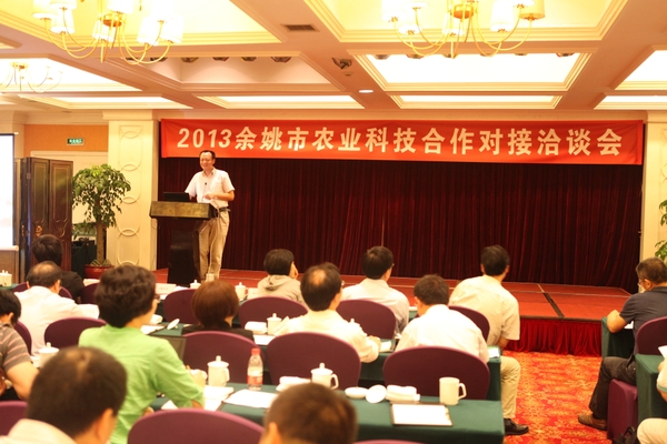 浙農林大新聞網訊  6月5日至6日,2013年余姚市農業科技合作對接洽談活動在余姚召開,我校社會合作處組織農業、林業、加工、畜牧等相關專家參加了此次活動。余姚市鄉鎮(街道)、農業企業(合作社、家庭農場、種養殖大戶)、農技推廣部門等200余人參加了會議。