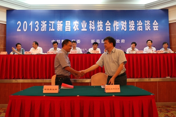 浙農林大新聞網訊 9月11日上午,由新昌縣委、縣政府主辦,縣科技局承辦的“2013浙江新昌農業科技合作對接洽談會”在新昌開幕。省科技廳黨組成員、紀檢組長宋志恒,中華全國供銷合作總社杭州茶葉研究院院長張士康出席開幕式。我校社會合作處組織專家參加了此次活動。