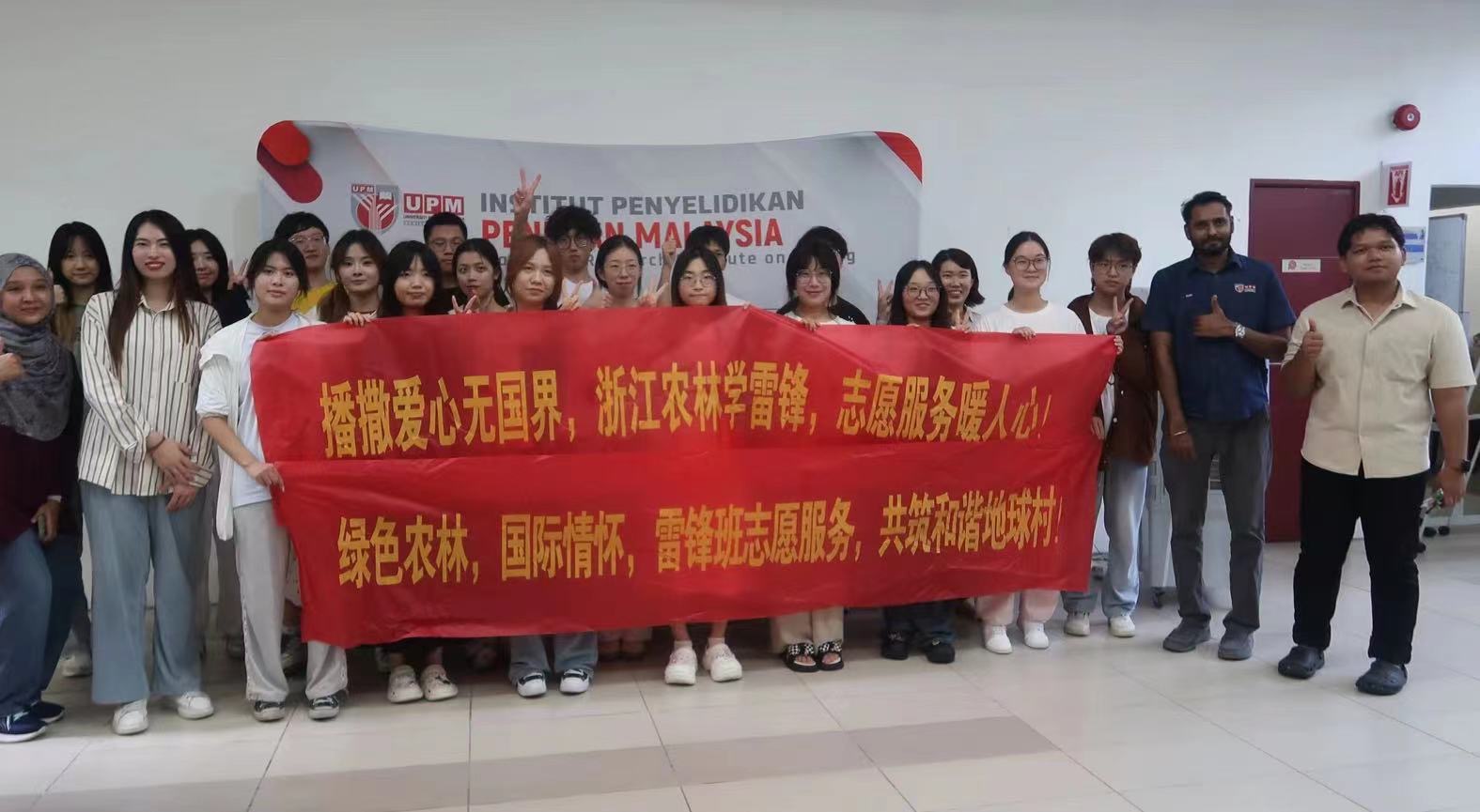 暑期,學校海外游學團和“雷鋒班”成員在馬來西亞博特拉大學養(yǎng)老院開展了幫扶當?shù)貧埣踩耸康幕顒?。在帶隊老師的指導下,赴海外的志愿者們進行了一場暖心的志愿活動。