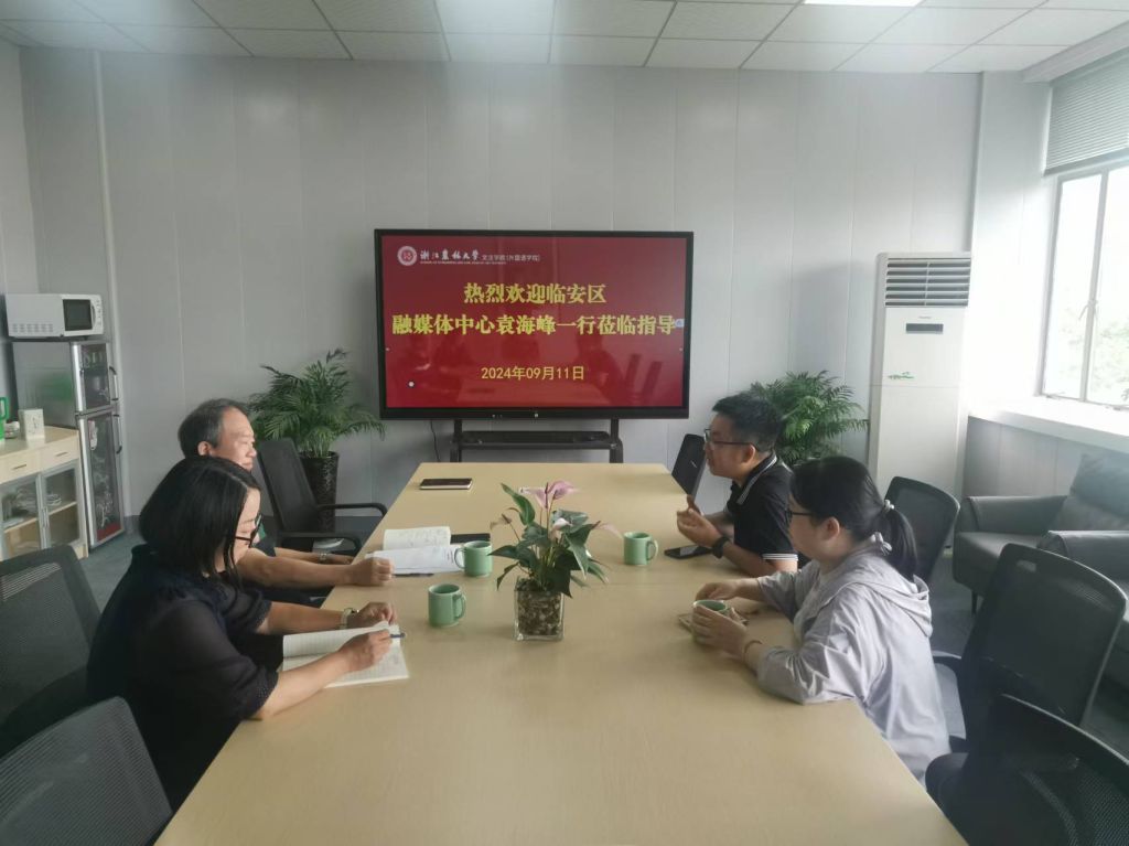 9月11日,臨安區融媒體中心袁海峰一行到文法學院交流合作。文法學院黨委書記朱紅東和相關負責人參加座談交流。