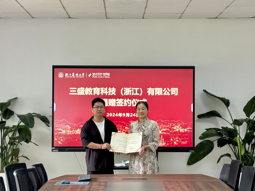 9月24日,藝術(shù)學(xué)院與三盛教育科技(浙江)有限公司舉行捐贈(zèng)簽約協(xié)議。三盛教育科技(浙江)有限公司相關(guān)負(fù)責(zé)人白福利、戴佩蓉,藝術(shù)學(xué)院黨委書記黃曉芳、相關(guān)負(fù)責(zé)人及教師代表參加儀式。