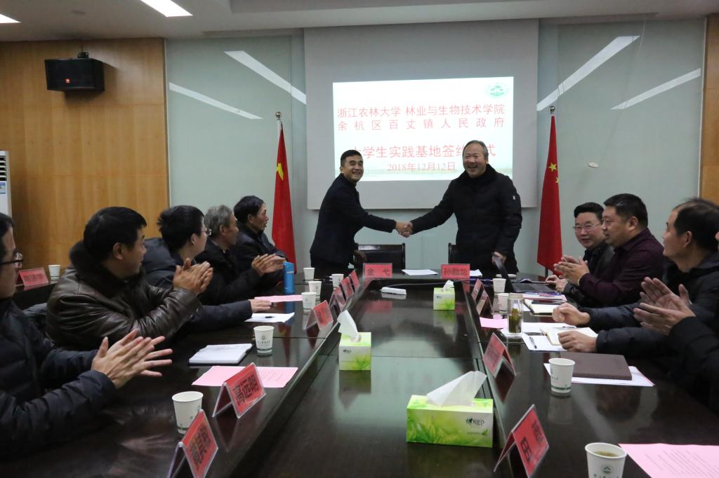 學院與余杭區百丈鎮人民政府就合作形式、具體合作事宜開展了詳細的討論,達成了合作共識,明確了下一步工作計劃,并簽署了浙江農林大學林業與生物技術學院-余杭區百丈鎮共建大學生林下經濟實踐教育基地意向協議。