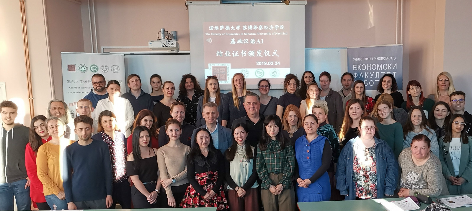 當地時間3月26日,諾維薩德大學孔子學院為坐落在蘇博蒂察市的諾維薩德大學經濟學院教學點的學生舉辦了一場漢語課程結業證書頒發儀式。