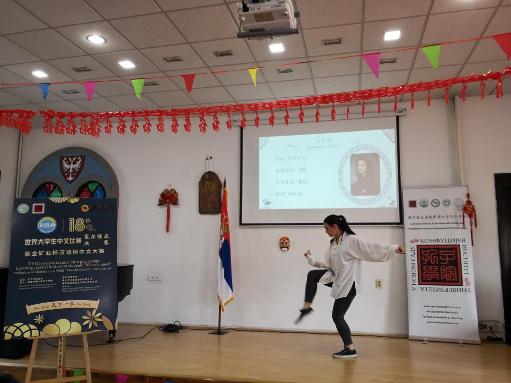 比賽分為主題演講、才藝展示、現場問答和寫作四個環節。來自貝爾格萊德大學孔院和諾維薩德大學孔院的11名學生展開了激烈的角逐。