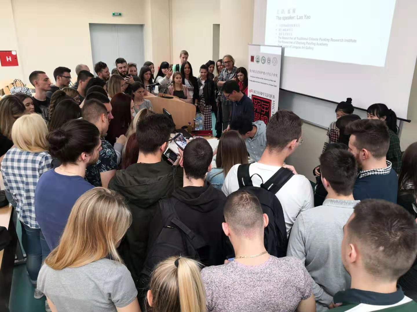 近日,諾維薩德大學孔子學院在塞爾維亞首都貝爾格萊德及南部城市沙巴茨舉辦中國寫意畫講座及展示活動。來自中國浙江的著名畫家徐鋒、藍耀為漢語課程學生和當地民眾帶來了如何欣賞寫意中國畫的講座、寫意中國畫現場創作展示,并現場指導學生進行中國寫意畫創作。活動分別在諾大孔院合作教學點麥加特倫德大學(Megatrend University)、辛格頓那大學(Singidunum University)和沙巴茨高中(SabacHigh School)舉行。中國駐塞爾維亞大使館文化參贊崔英蘭出席了麥加特倫德大學的活動。